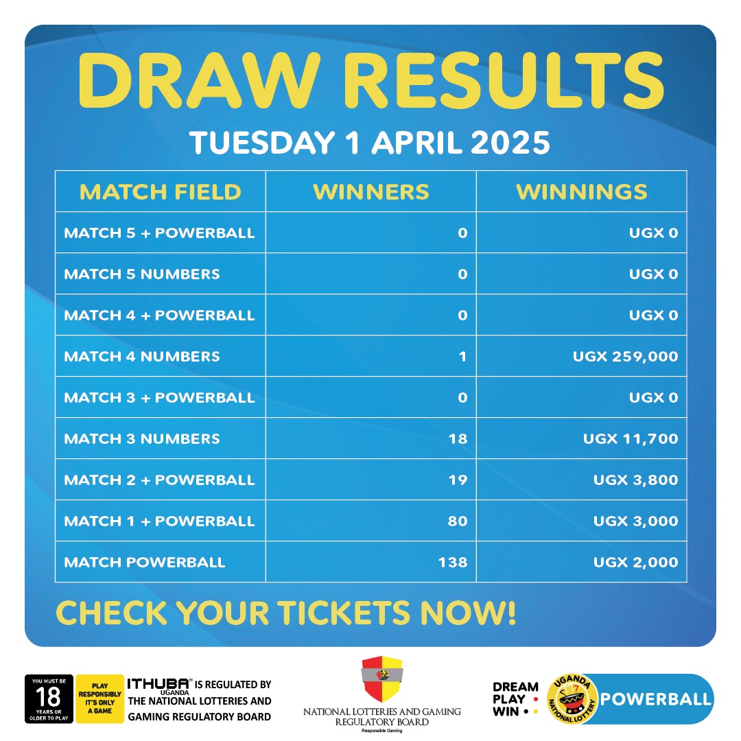 You have another chance to win the GUARANTEED jackpot of UGX 1 BILLION on Friday 04/04/2025. Click on the link https://bit.ly/3Ba5kMy or dial *278# OR *185# on Airtel Money OR *165# on MTN MoMo or *252# (the lifestyle) to play.