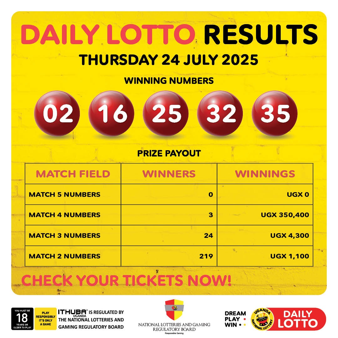 Here are the Draw Results for #DAILYLOTTO on Thursday (24/07/2025):