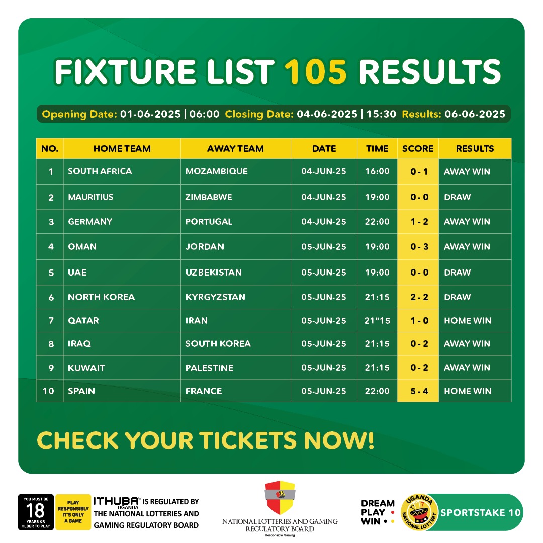 Players must be 18 years or older, play responsibly. ITHUBA Uganda is the proud operator of the Uganda National Lottery.