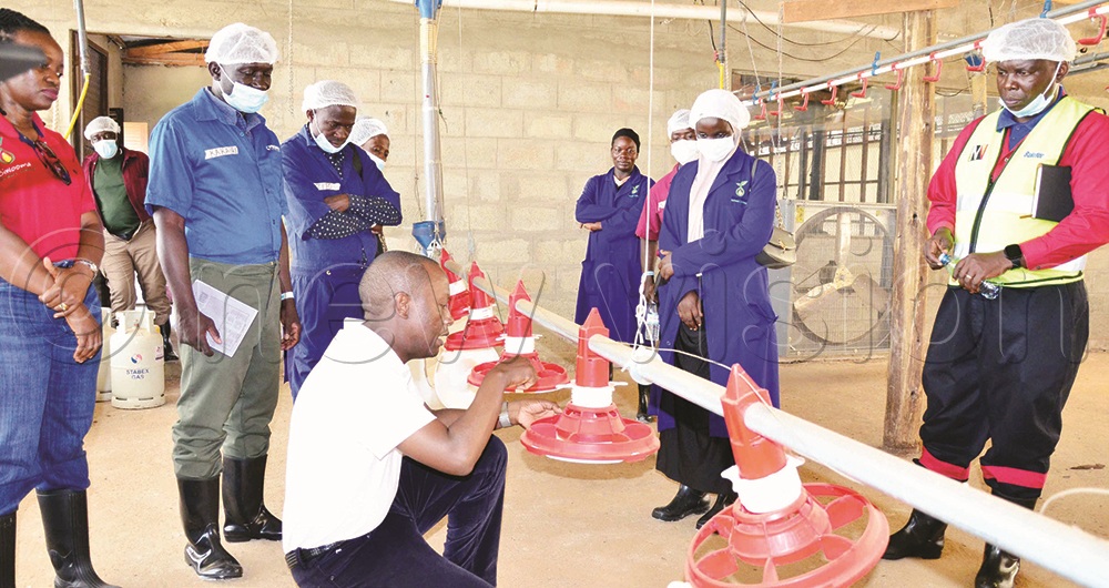 Gabindadde (centre) explains how a chicken slaughter business can be run successfully. This was at Biwooma Farm in Gayaza, Wakiso