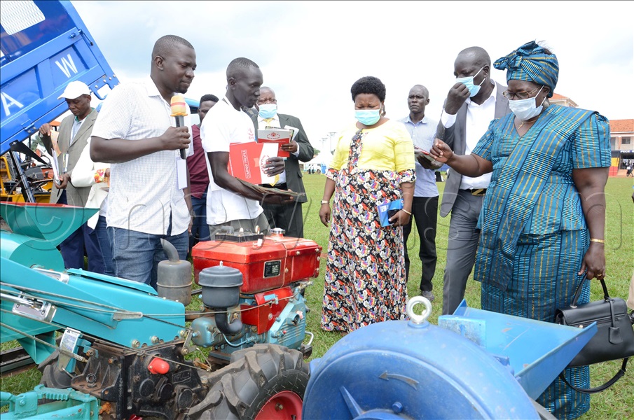 Consolata Acayo, the assistant commissioner (right) in company of the City and District officials interacting with exhibitor. Photos by Arnest Tumwesige