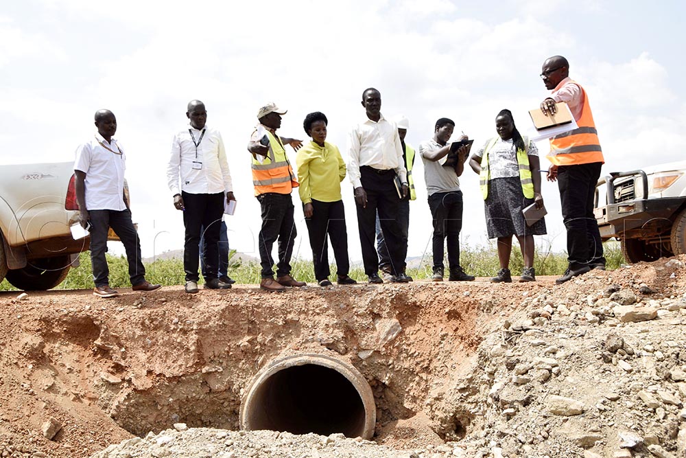 Ministry of lands officials, local government and contractors inspecting a road under construction in Isingiro district on September 5 (Photos by Simon Peter Tumwine)