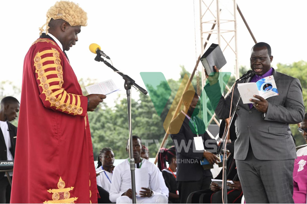 Biishopu Moses Odongo yayemekwa nka mukuru w’ekigombe ekya NFBPC aha kishaayi Kololo, Kampala aharwakabiri. Photo by Mpalanyi Ssentongo.