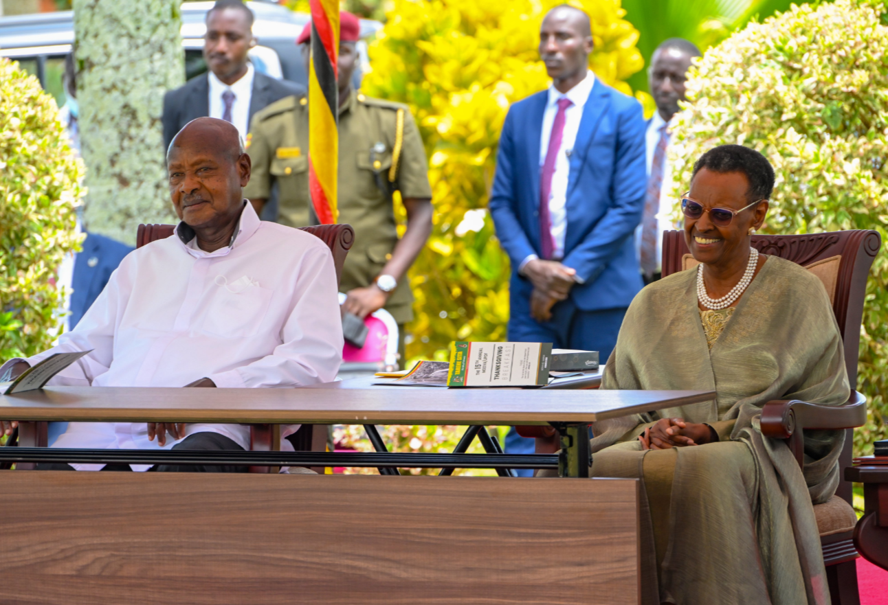 Purezidenti Yoweri Museveni n'omukazi we, Janet Kataaha Museveni baheza kuhika ahari kyasya y’okusiima ahabw’okujaguza ekiro ky'amahe ekya Tarehe Sita ey'omurundi gwa 15 ebaire aha kitebe kikuru kyamahe omuri Mbuya nyomwabazyo ebiro 04.03.2026.