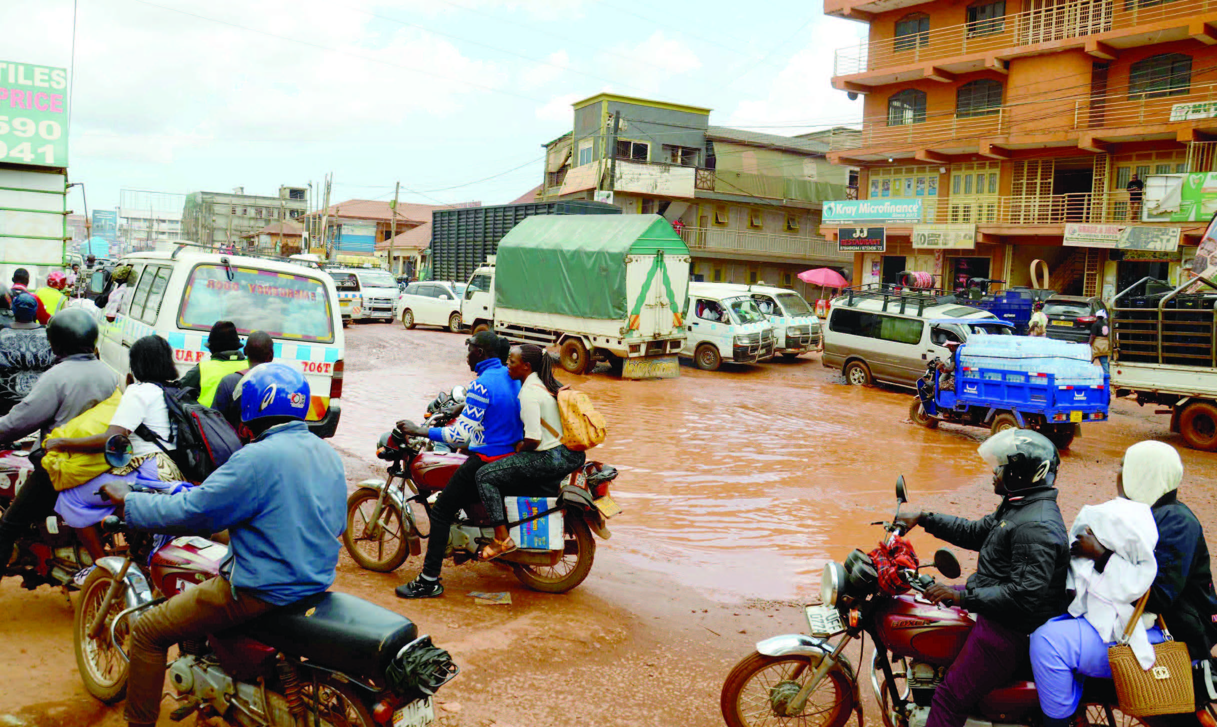 Mu kifo kino waliwo ebinnya bingi, nga buli enkuba lw’etonnya weesima ne mulegamamu amazzi, ekireetera ab’ebidduka okuwagaanya ne babiyisa ku mbalaza z’ebizimbe okwewala okugwa mu binnya.