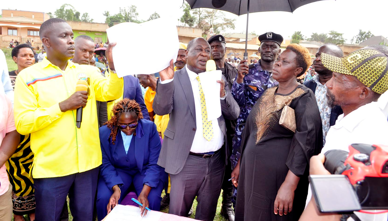 Yagambye olufunye ettaka lino, ate Pulezidenti yabawadde ebikolo by’emmwanyi emitwalo 23 n’asaba abatuuze okuzisimba kubanga kati tewakyali abagobaganya.