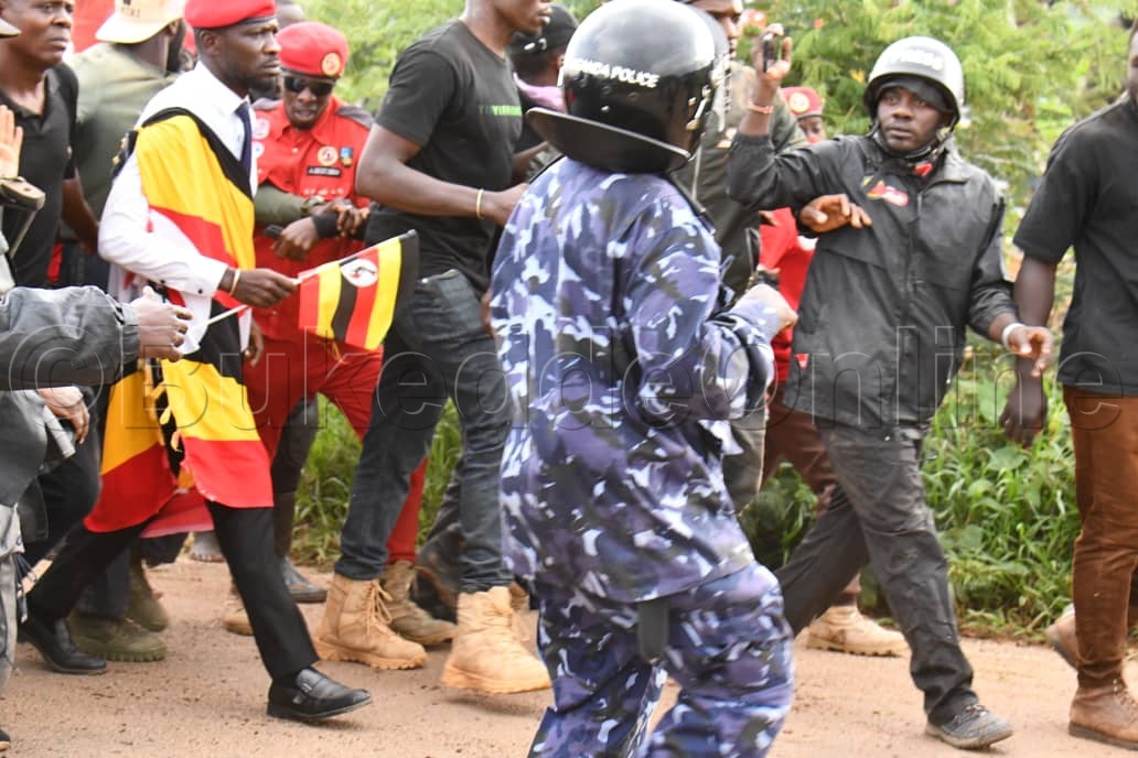 Embeera eno ewalirizza Kyagulanyi okuva mu mmotoka ye n'ayita mu baserikale wakati n'abakuumi be ng'ono yeegattiddwako abawagizi be.