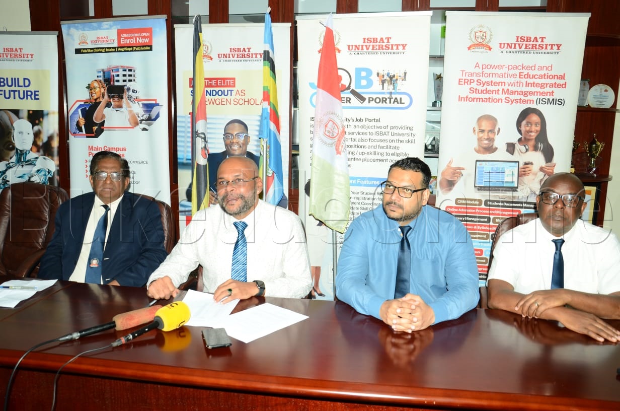 Pulof Kattampackal wakati VC, asooka ku kkono ye Dr Kumar Pradeep director academic affairs, owookubiri ku ddyo Dr Paul Giju academic registra ne Dr Tyagi Vaibhav dean faculty of ICT mu lukungaana lwa bannamawulire