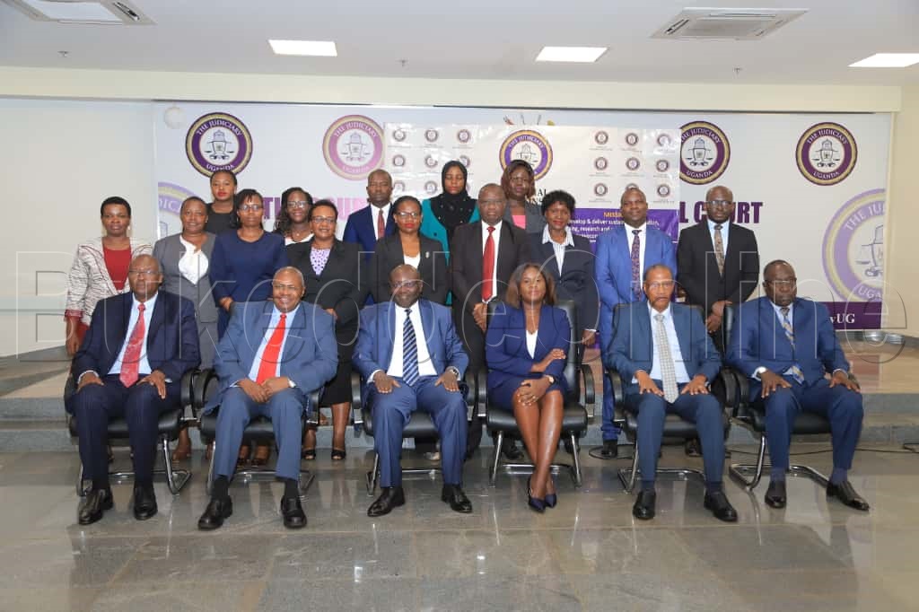 Akola nga omuwandiisi w'essiga eddamuzi nga alamusa ku bamu ku balamuzi abetabye mu kutendekebwa ku kkooti enkulu mu Kampala