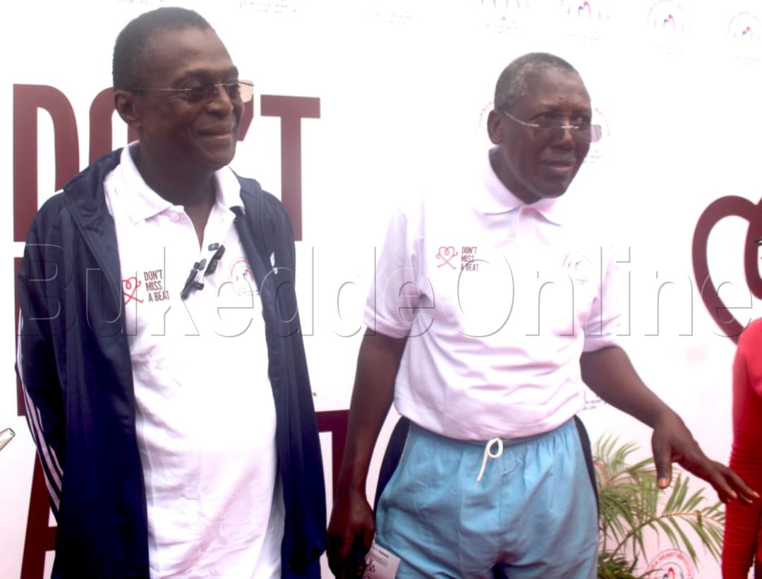 Dr John omagino akulira ddwaliro lyemitima e Mulago ( white) Dr Peter Rwabi amyuka omukulu we ddwaliro lye Mitima eryq UGANDA HEART INSTITUTE E MULAGO