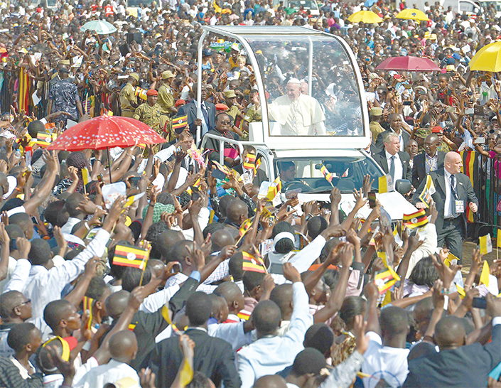Omugenyi ono si mulala ye musika wa Yezu Kristo era omusika wa Peetero, Omutukuvu Paapa rancis eyaweesa Uganda ekitiibwa bwe yatonnya ku kisaawe e Ntebe ku bugenyi obw’ennaku ebbiri Bannayuganda bangi bwe bakyanyumyako emyaka kati
