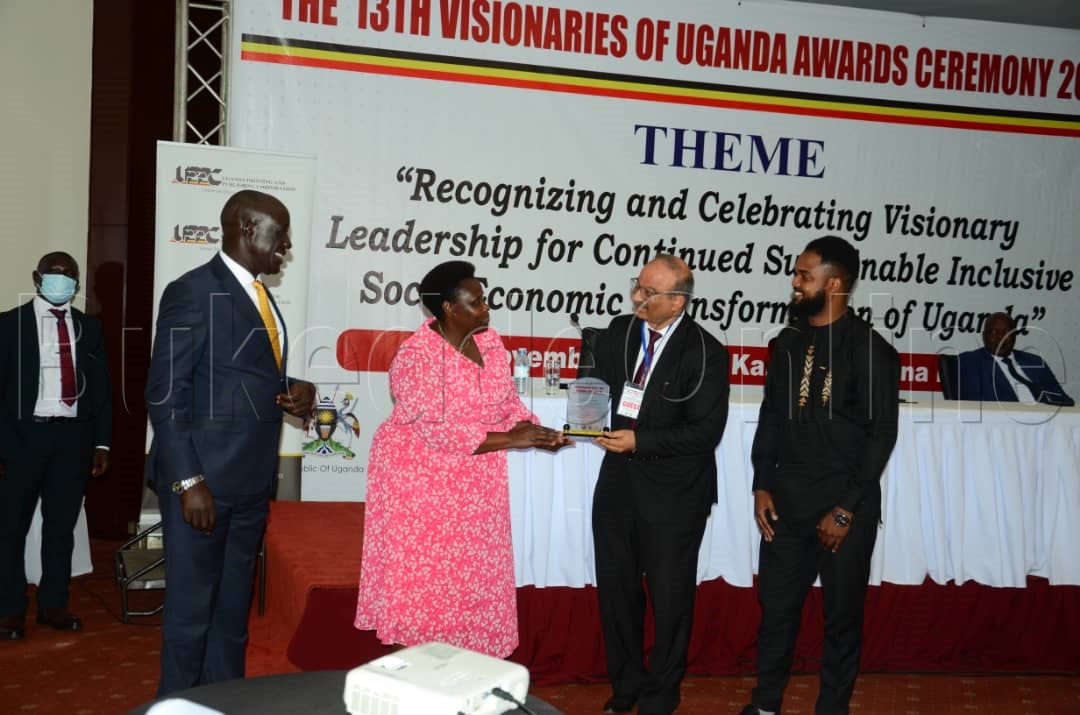 Engule yabakwasiddwa omumyuka womukulembeze w'eggwanga Rtd Left Jessica Alupo ku mukolo gw'empaka za Visionaries of Uganda Awards ogwabadde ku woteeri ya Serena ku lw'okuna.