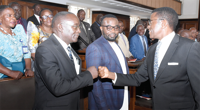 “Kansooke okubategeeza nti Ssaabasajja Kabaka gyali mu Lubiri lwe, ateredde ntende alamula Obuganda,” ebigambo bino Mayiga yabitegeezezza abakiise, olwo bonna ne bayimirira ng’enkola bw’eri ne bagattako emizira n’engalo..