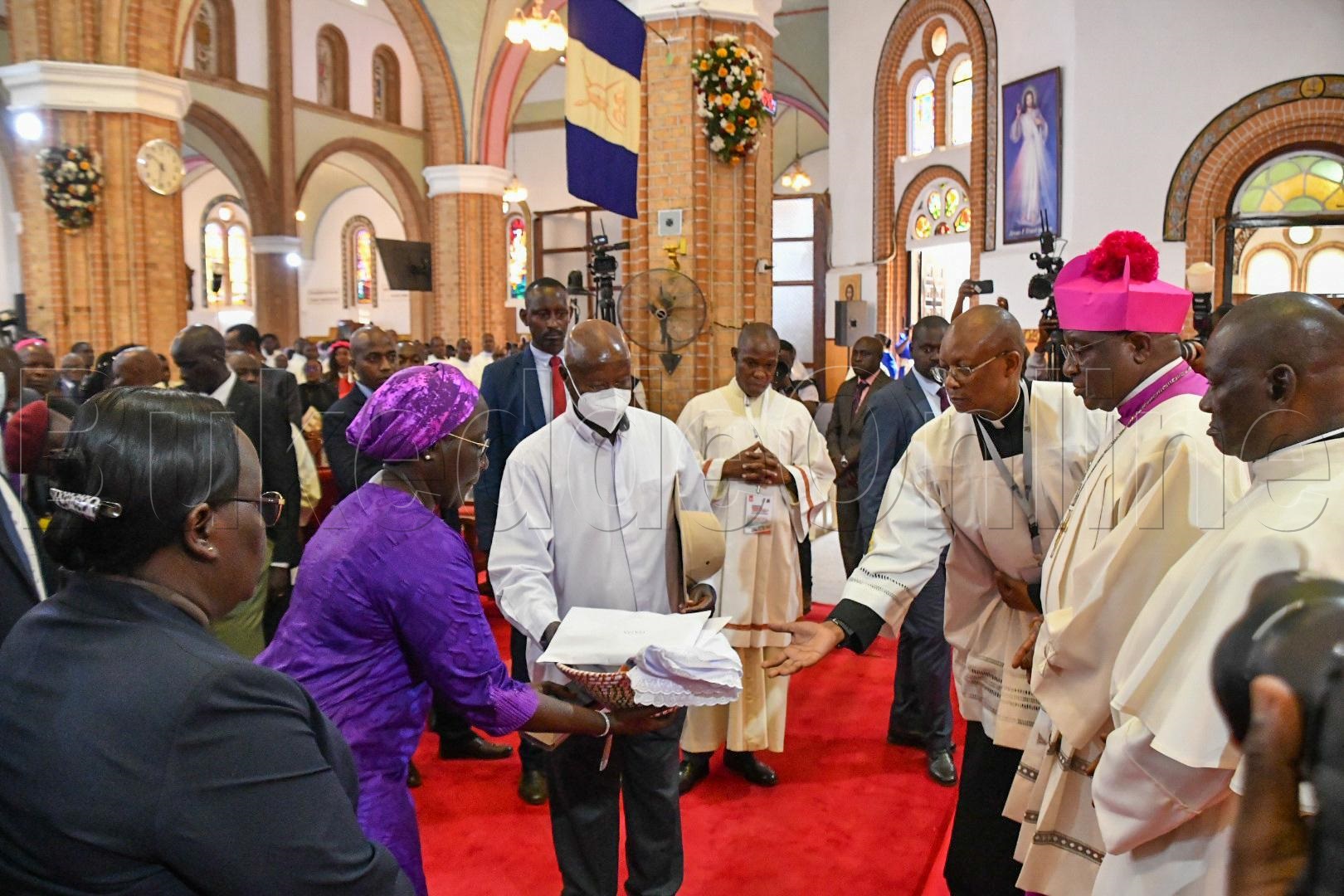 Presidenti Museveni ng'ali mu Klezia e Lubaga