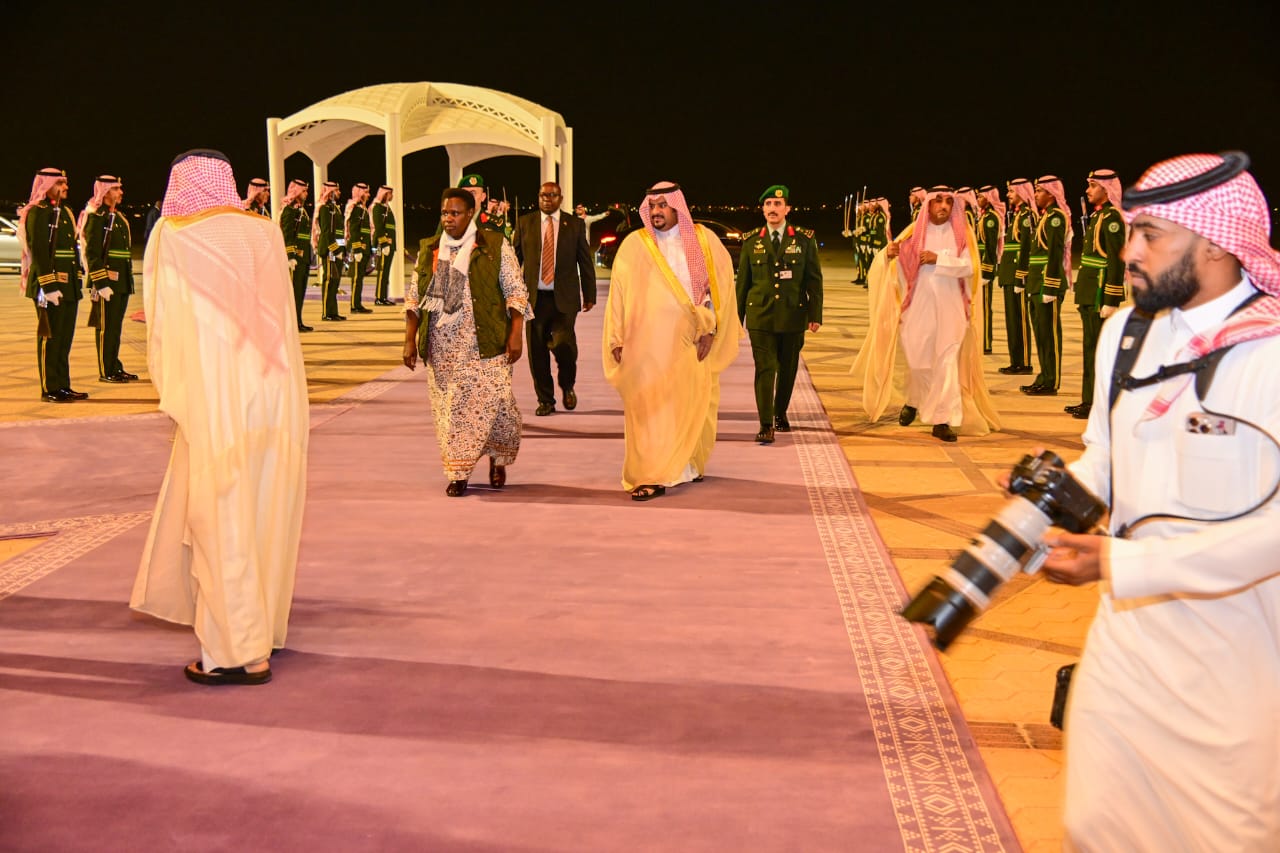 Jesca Alupo olutuuse ku kisaawe ky'ennyonyi ekimanyiddwa nga Royal Terminal of King Khalid International Airport ayaniriziddwa omumyuka wa Gavanao wa Region ya Riyadh Omulangira Mohammad Bin Abdulrahman bin Abudulaziz ne Ambasada Isaac Biruma Ssebulime ssaako n'abakungu abalala