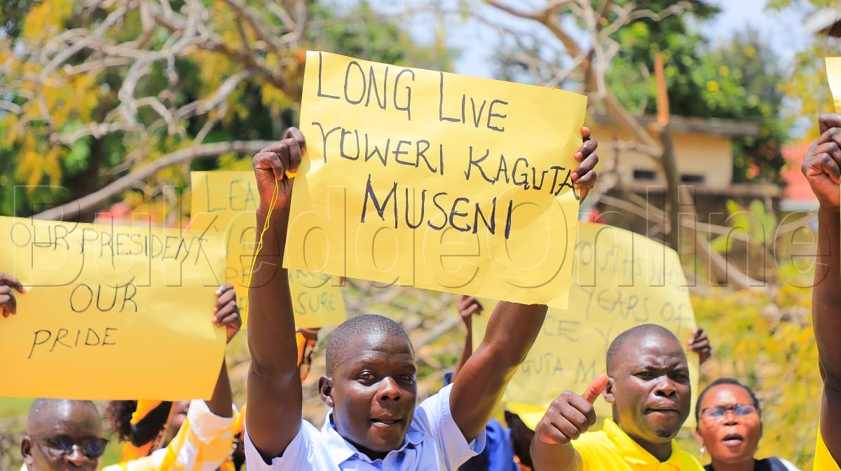 Eddie Kenzo ng'ayimbira ku Rally ya Museveni
