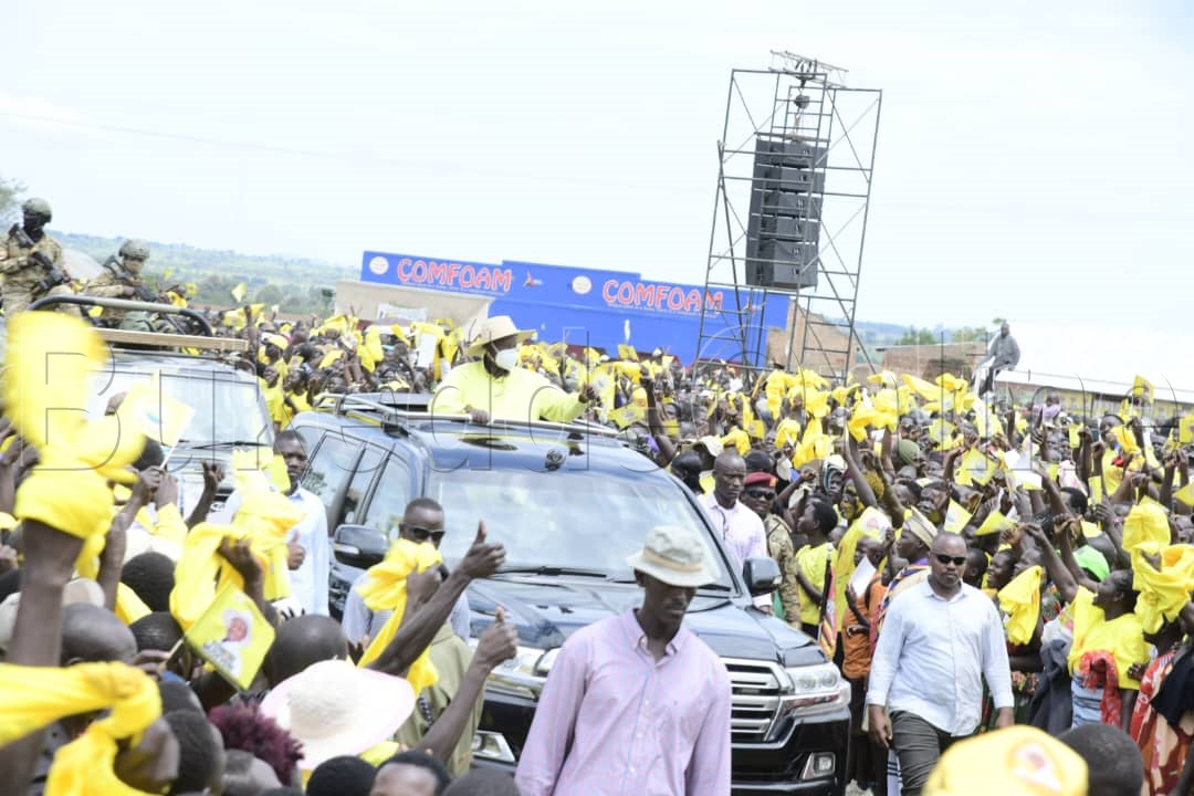 Pulezidenti Museveni nga bamwaniriza mu Acholi