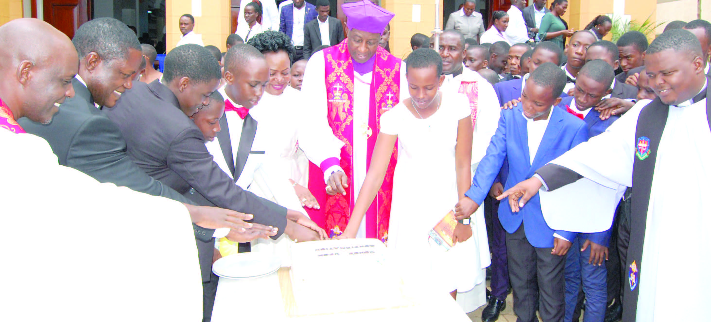 SSAABALABIRIZI w’ekkanisa ya Uganda, Dr. Stephen Kazimba Mugalu atadde emikono ku bayizi ba Makerere College School 112.