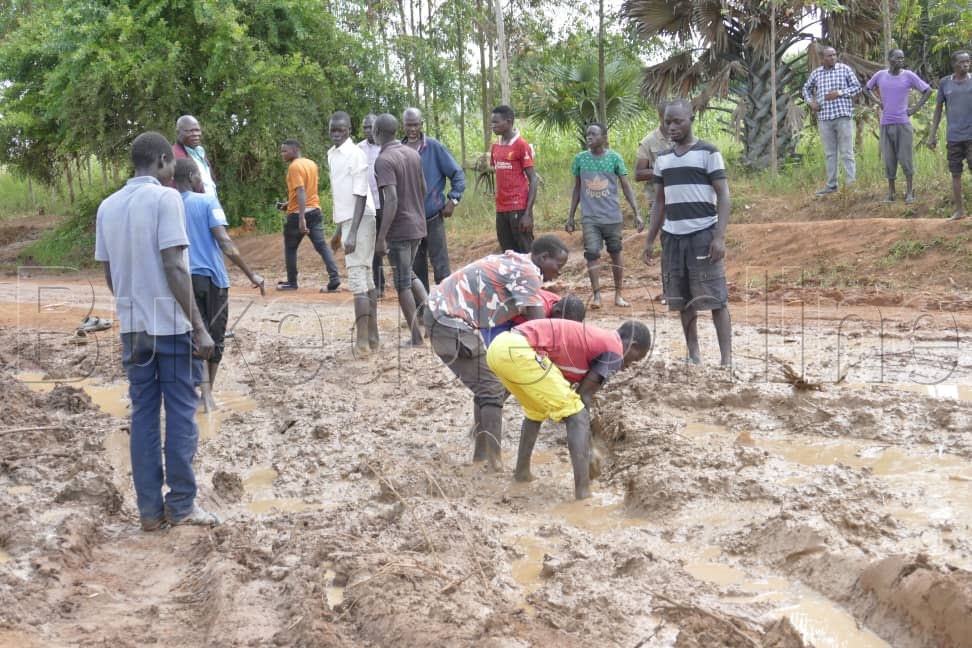 Gen.Muntu bw'abadde ayolekera Disitulikiti ye okutuke okusaggula akalulu asanze akaseera akazibu bw'atuuse ku kyalo Aburu B mu Muluka gw'e Agwenge mu Ggombolola y'e Alango n'asanga nga Ekkubo lyayonoonese.