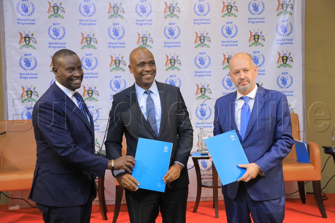 Amyuuka akulira WFP Murcus Prior mukutongoza number plate za WFP e Munyonyo