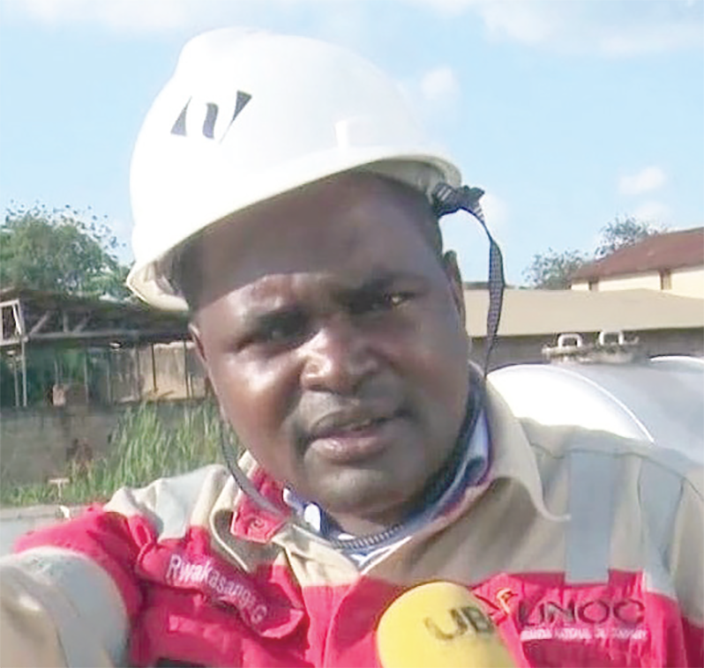 YINGINIYA wa kkampuni y’amafuta eya Uganda National Oil Company (UNOC) abadde agenze okwewummuzzaamu ku biyiriro by’e Busowoko ku mugga Kiyira, aseeredde nga yeekubya ebifaananyi, ennyanja n’emumira.