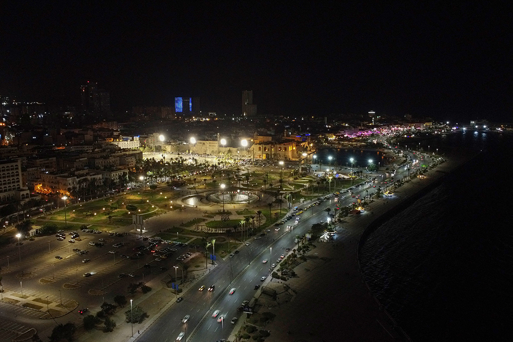 It's midnight just before the weekend. Traffic snarls the corniche in Tripoli, where improved electricity service has brought renewed energy to Libya's capital after years of conflict and