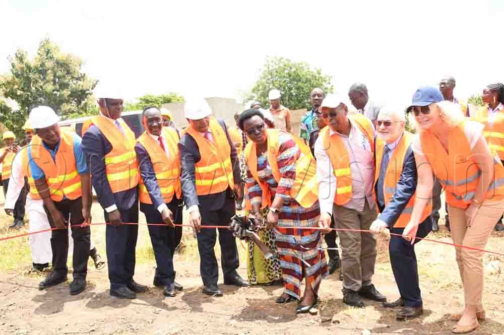The state minister for Northern Uganda, Grace Freedom Kwiyucwiny (C) led officials and commissioned a road in Adjumani district. (Credit: Eddie Ssejjoba)