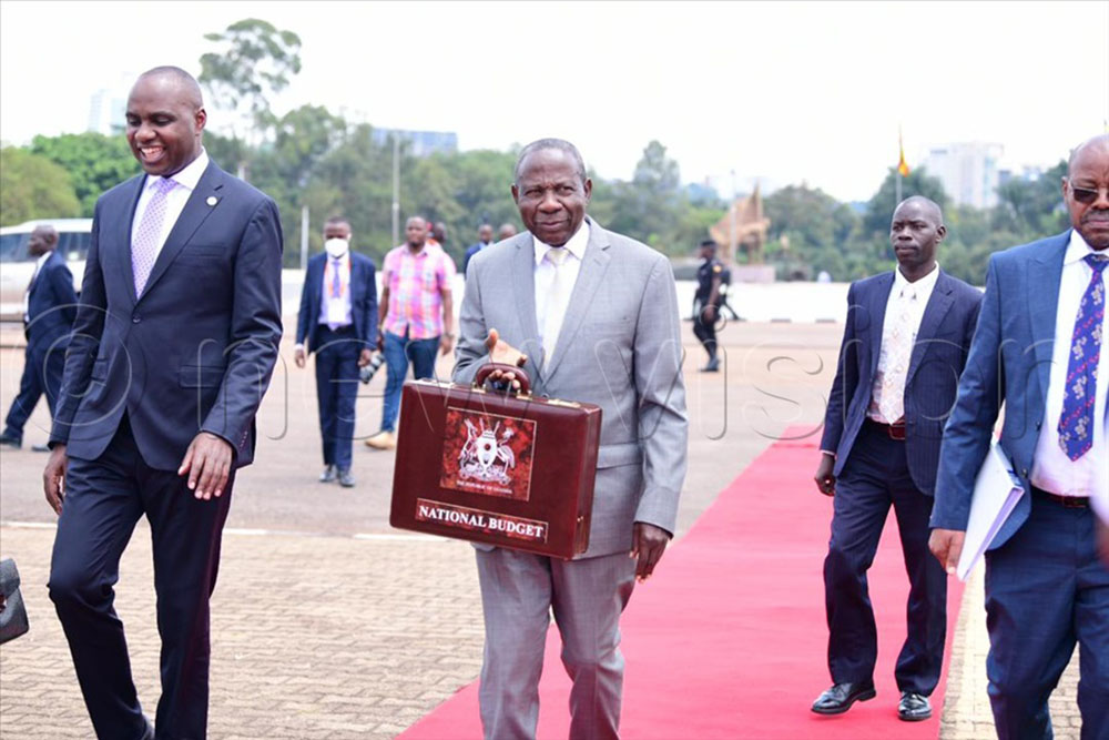 Henry Musasizi, Minister of State for Finance, Planning and Economic Development and Matia Kasaija, Ministry of Finance, Planning and Economic Development during the Budget reading. (Photo by Miriam Namutebi)