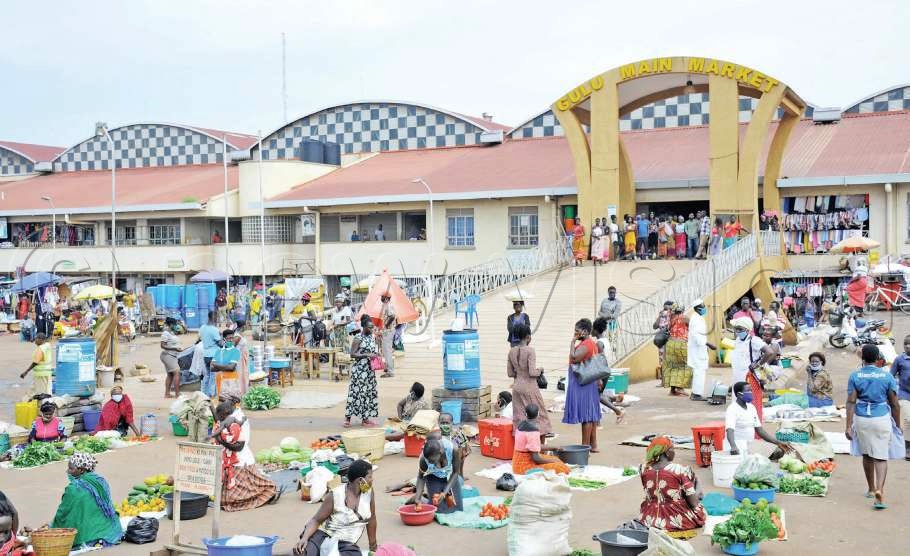 Vendors waiting for customers outside Gulu Main Market as one way of social distancing due to COVID-19 standard operating procedures in Gulu district.