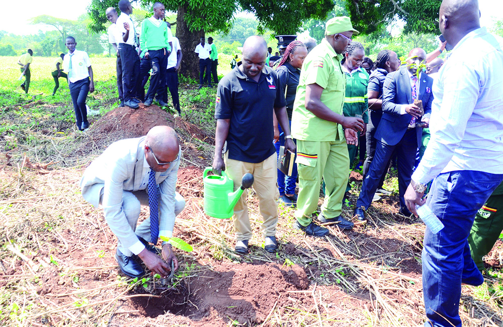 Hoima West Division MP Joseph Ruyonga, launching the tree planting campaign in Hoima schools recently. (Photo by Wilson Asiimwe)