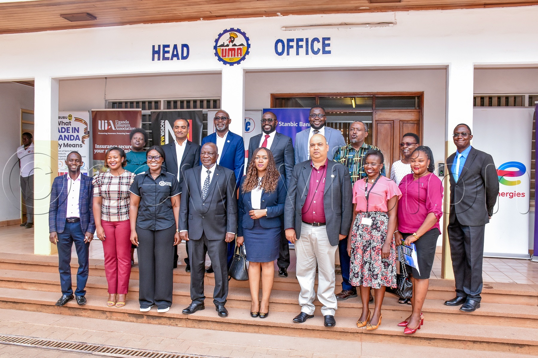 The UMA Chairperson Deo Kayemba (front row) with other stakeholders after a media briefing in Kampala.