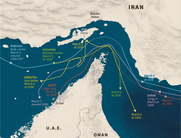 - Several ships anchored in the Gulf or transiting the Strait of Hormuz are changing their tracking data to claim links to China in an attempt to evade Iranian attacks, according to data from shipping tracker MarineTraffic analysed by AFP.