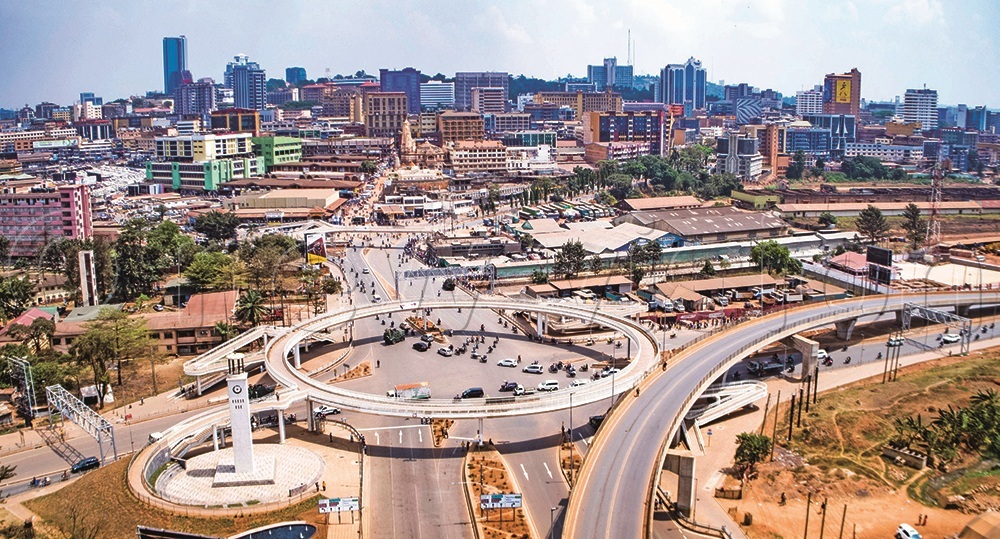 An aerial view of the completed Kampala Flyover Lot 1, which includes the clock tower, pedestrian bridge, Shoprite pedestrian bridge and the New Clock Tower. Infrastructure is one of the factors that aided Uganda’s growth.