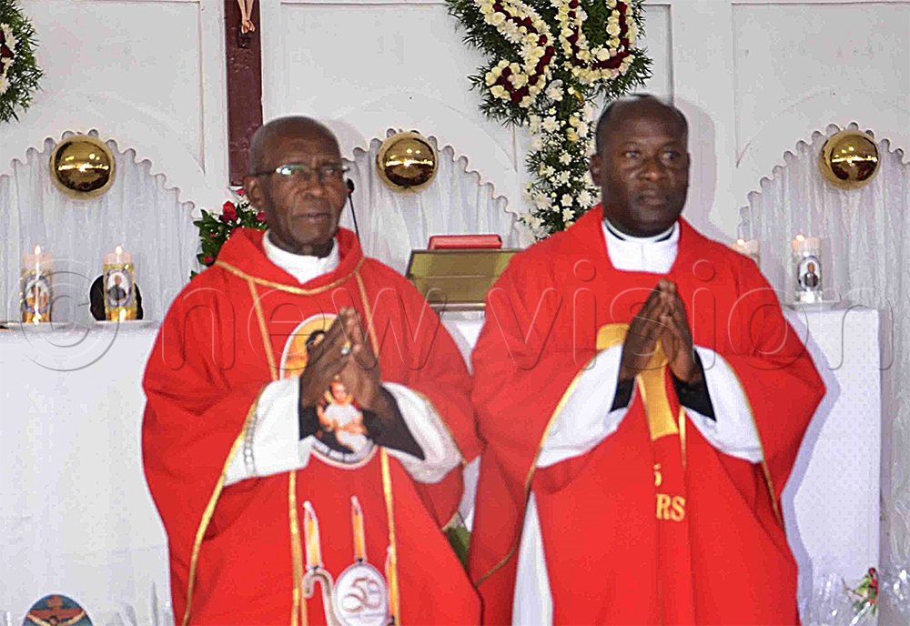 Two brothers, Fr Joseph Kakooza and Fr Joseph Ssemanda on Saturday celebrated a combined silver and golden years of priestly service attached to the Kampala Archdiocese. (Photo by Juliet Lukwago)