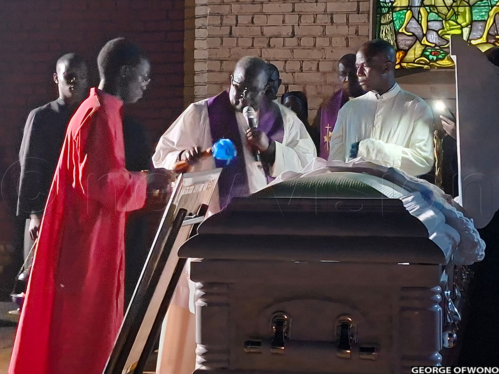 The arrival of the late bishop's body at around 8pm was met with solemn reverence. The Most Rev. Dr Emmanuel Obbo, the Archbishop of Tororo Archdiocese, presided over the reception, sprinkling holy water on the casket in a sacred gesture of purification and blessing.