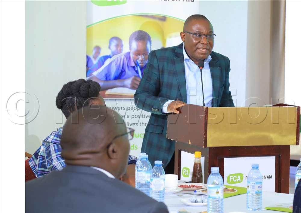 Finn Church Aid Head of Program Stephen Ssenkima addressing stakeholders at the dissemination of findings for the assessment on Career guidance and Counselling in Secondary schools.