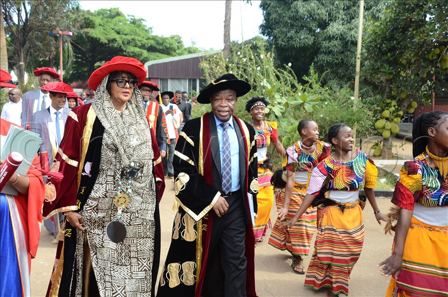 (L-R) Prof. Emeka Akaezuwa, the Vice Chancellor International University of East Africa (IUEA) and Amb. Dr. Amina C. Mohamed, the University Chancellor arriving for the 12th graduation ceremony of the International University of East Africa at the main campus in Kampala on November 27, 2025.