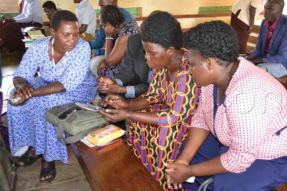 Headteachers go through TELA, a new smartphone-based inspection tool to curb absenteeism of headteachers and teachers in public schools. (Credit: Ambrose Niwagaba Katoto)