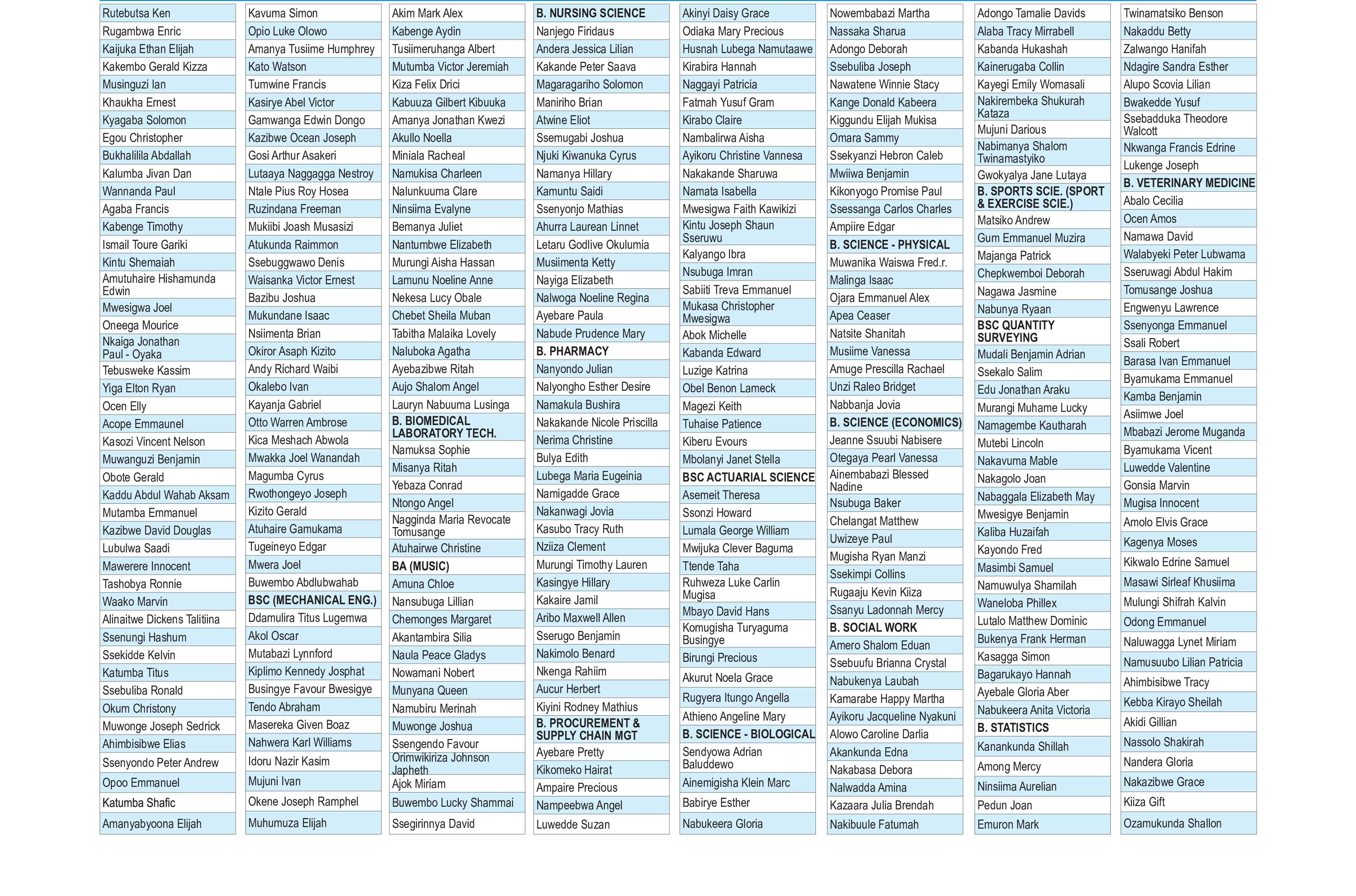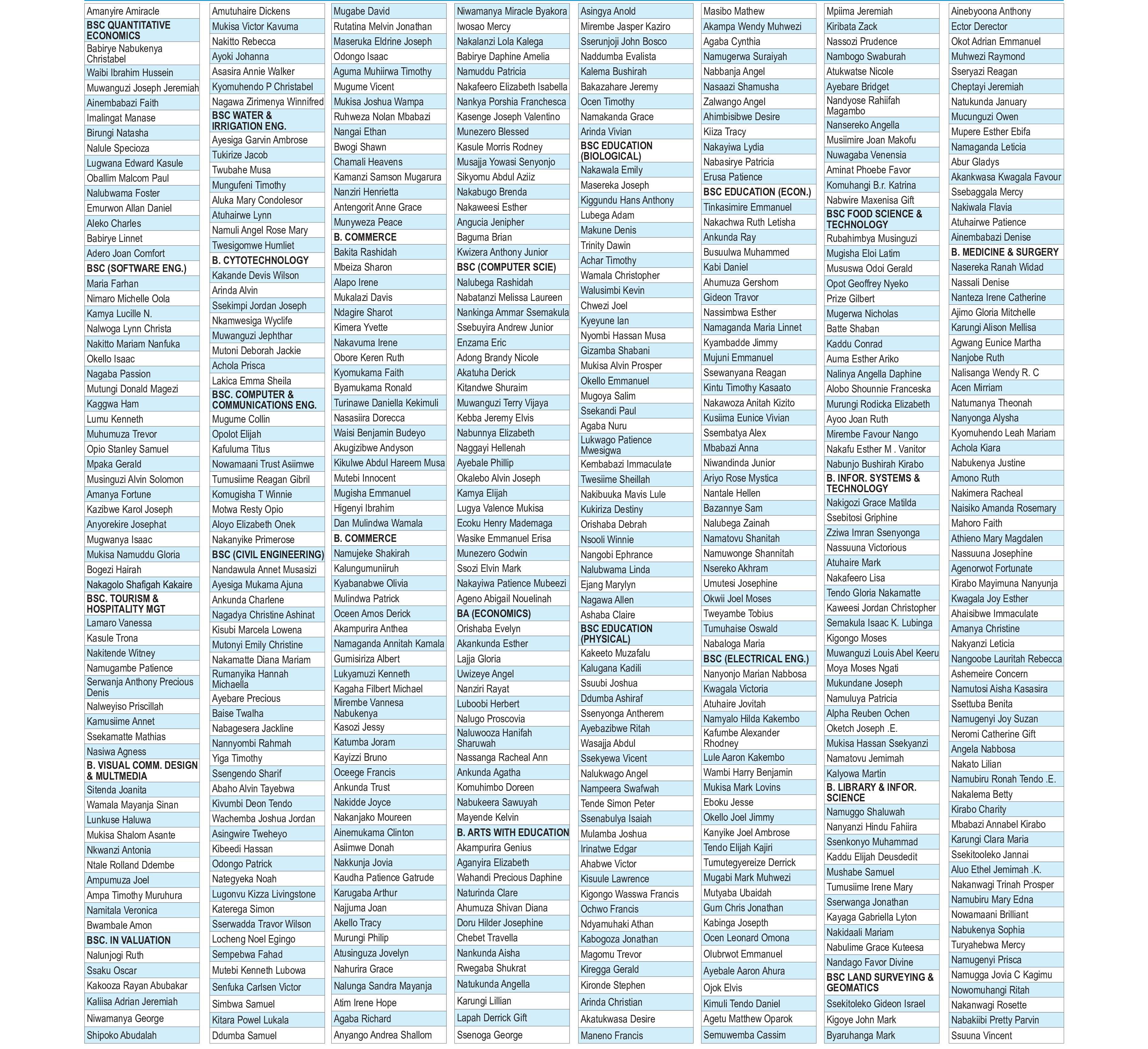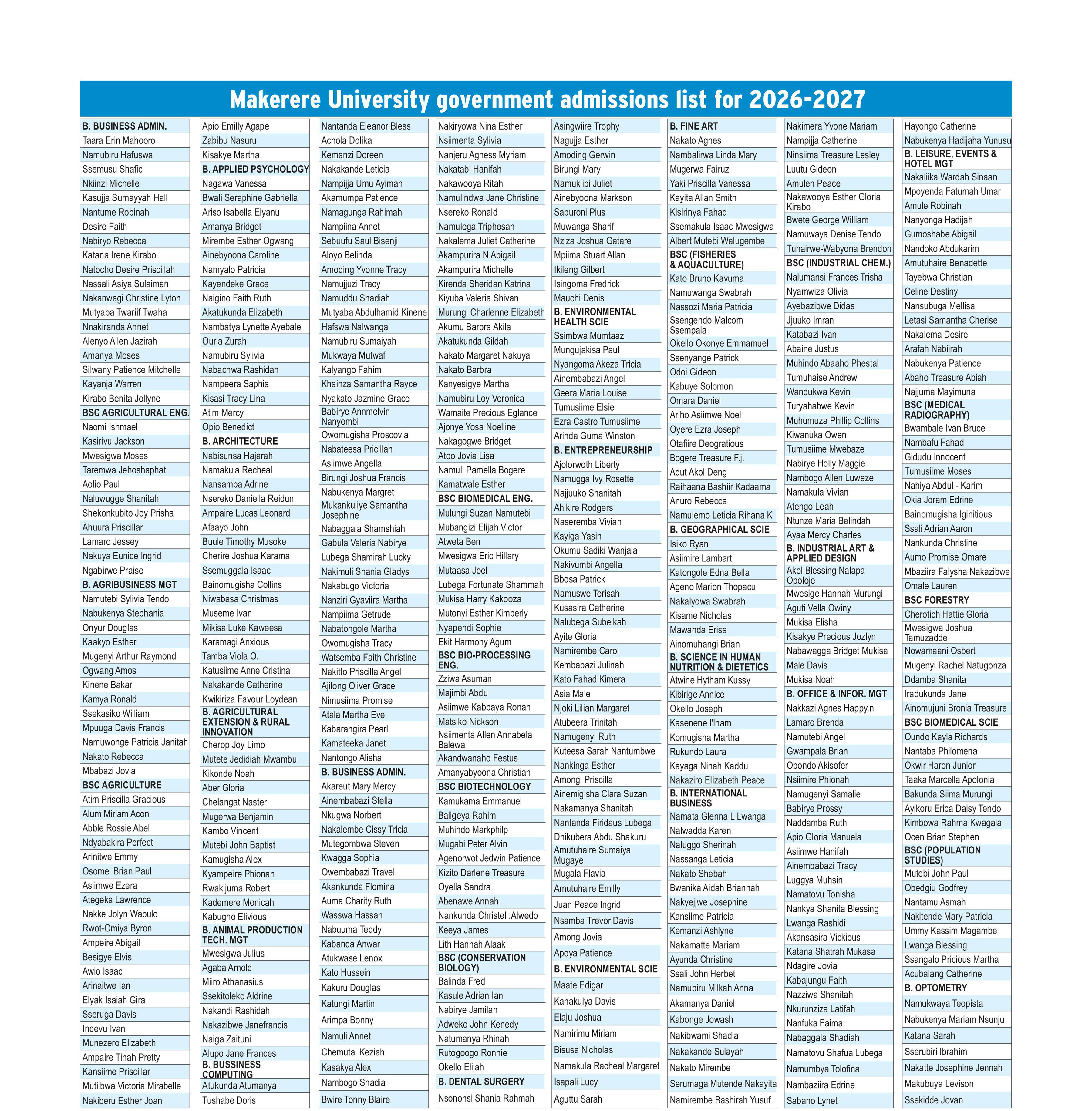 __________________________ ACADEMICS Below is the full list of the Makerere University admissions for government-sponsored students for the academic year 2026-2027.