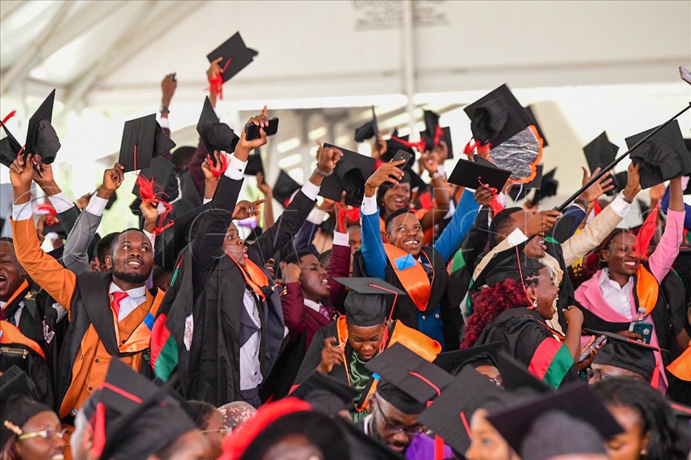 Graduates celebrating during the 75th graduation ceremony. (Photos by Miriam Namutebi)