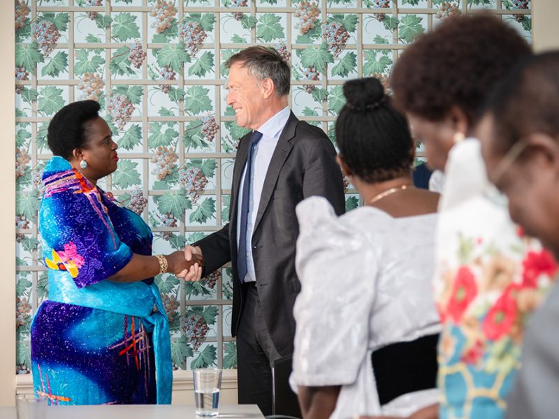 Dr Matthis Roessler, President of Parliament, welcomes Ugandan Minister Betty Amongi to Dresden in the German Free State of Saxony (Courtesy photo).