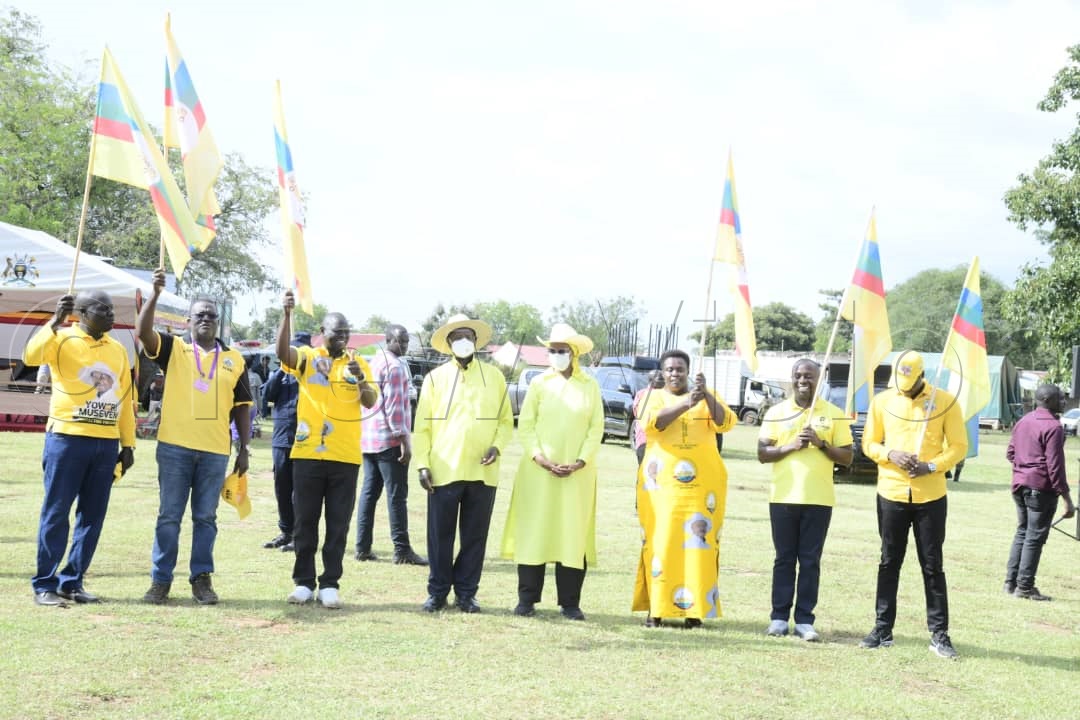 The rally venue was a giant swathe of yellow, with supporters wearing yellow T-shirts bearing Museveni's image.
