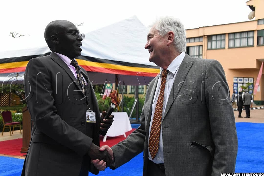 New Vision Editor John Eremu greets one of the embassy officials.