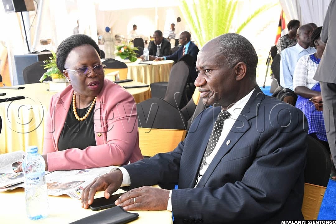 1:34 PM In the picture below, Vision Group board member Dr Patricia Litho (left) has a chat with Vision Group Deputy MD and Company Secretary Gervase Ndyanabo, as they, too, wait for the ceremony to begin.