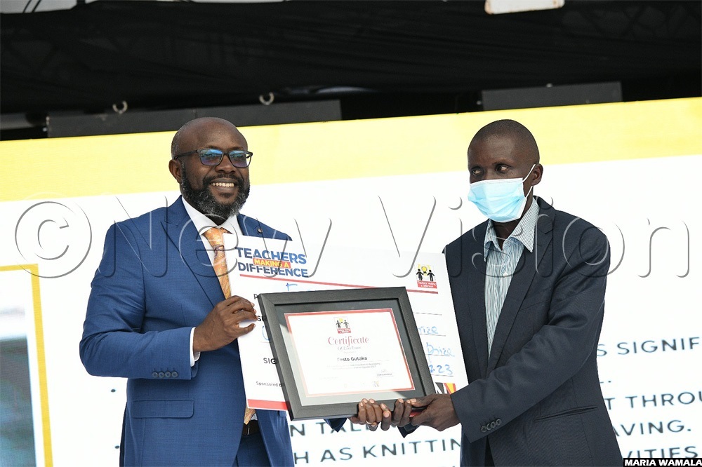 Joel Mukose, the headmaster of Namagonjo Primary School in Bugiri district in Busoga sub-region. He gets a cash prize of sh2 million for himself and sh2.5 million for his school.