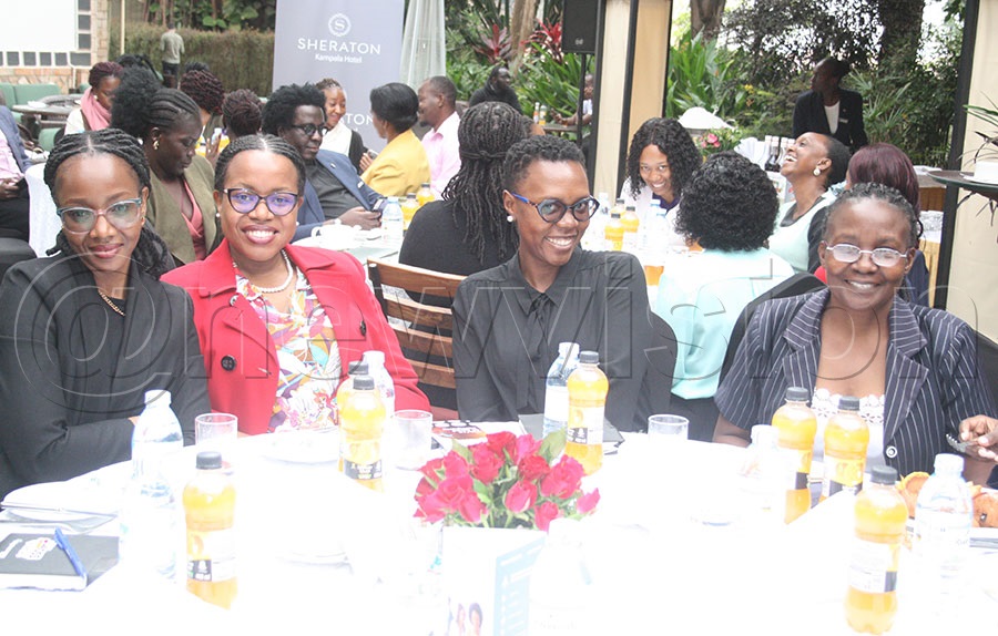 Eve Zalwango (in pink) the General Manager of AMCHAM with some members at the forum. Photo by Maureen Nakatudde