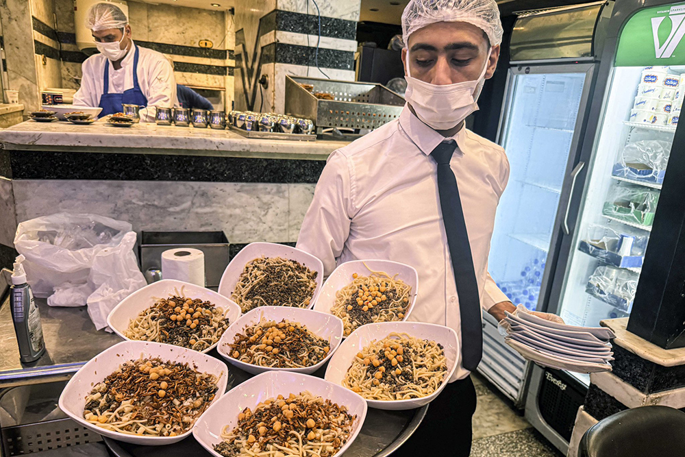 A chef prepares Koshary for customers at a restaurant in Cairo, Egypt, Dec. 10, 2025. (Xinhua)