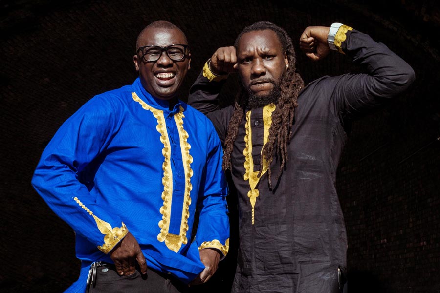 Ganda Boys artist Dennis Mugagga and Daniel Ssewagudde are artists based in United Kingdom and former old boys of St. Henry's College Kitovu. Photo by Nicholas Kajoba