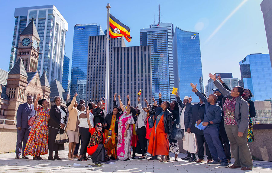 As Ugandans from all walks of life proudly celebrated their country’s 63rd Independence last Thursday, Gisha Nankunda Arts Association (GNAA), an arts and culture group serving East Africans and Caribbean community in Canada, in conjunction with the Ugandan High Commission in Ottawa debuted in raising the Ugandan flag at Toronto City Hall on October 9, in a fun-filled style to mark Uganda’s Independence celebrations.