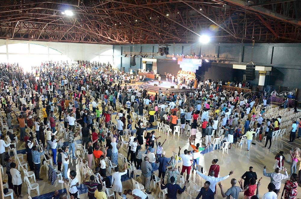Hundreds attend the Kampala Worship Experience at Miracle Centre Cathedral in Kampala on Easter Monday. (Credit: Lawrence Mulondo)
